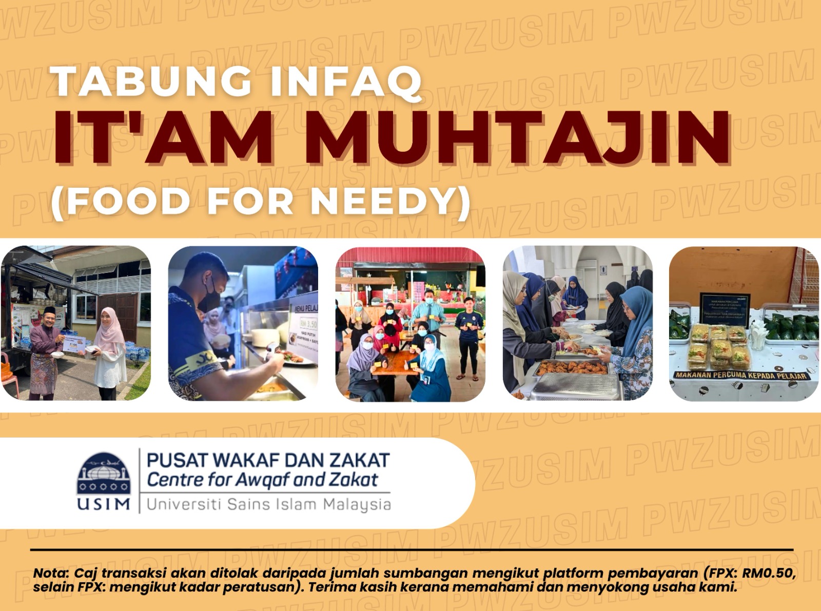 Dunia telah dikejutkan dengan penyebaran wabak koronavirus COVID-19 yang memberi kesan kepada seluruh dunia dari sektor ekonomi mahupun pendidikan. USIM tidak terkecuali dari pandemik wabak COVID-19 ini. Justeru tabung ini diwujudkan bagi membantu golongan yang memerlukan dalam kalangan kakitangan pelajar dan petugas barisan hadapan USIM. Manfaat tabung ini sedikit sebanyak dapat membantu mereka dalam bentuk keperluan asas seperti makanan barangan harian dan juga peralatan pelindung diri dari wabak seperti cecair pembasmi kuman dan topeng muka.